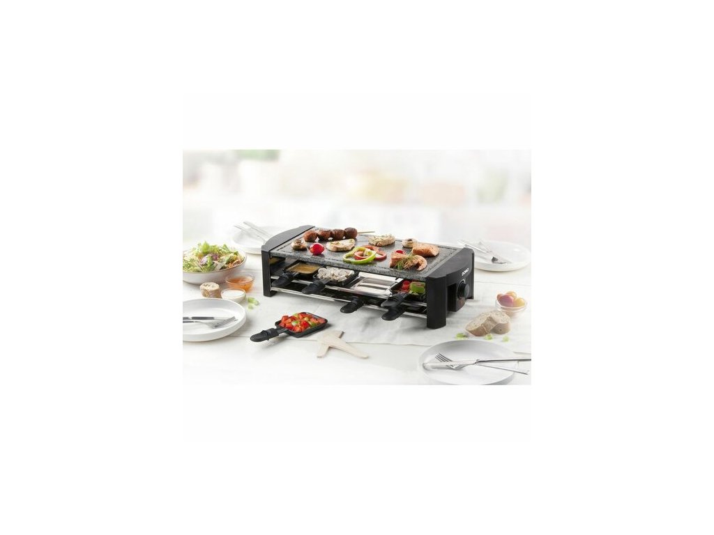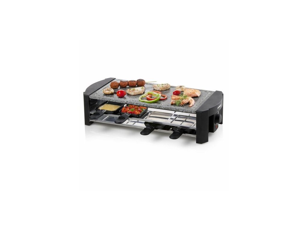 Či už je vonku 30 stupňov alebo mráz, s grilom raclette DOMO DO9186G si môžete zariadiť domácu grilovaciu párty kedykoľvek. Grilovacia plocha, ktorej doska je vyrobená z odolného kameňa, je dostatočne veľká pre viac osôb a navyše je možné použiť malé praktické panvice, do ktorých každý hosť vloží akúkoľvek pochúťku a pečie obsah pod gril.
